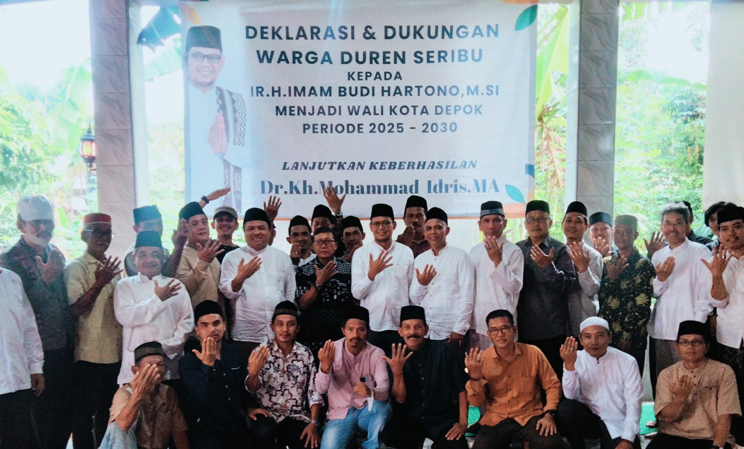 Deklarasi dukungan warga untuk Bang Imam maju sebagai walikota Depok dilaksanakan, pada Jumat (10/5/2024) malam disalah satu kediaman Tokoh Masyarakat Dede Helmi warga Rt 03 Rw 01 kelurahan Duren Seribu (Duser). Mereka secara resmi menyatakan dukungan terhadap Imam Budi Hartono sebagai calon pemimpin yang dianggap mampu Melanjutkan Pembangunan Mohammad Idris.