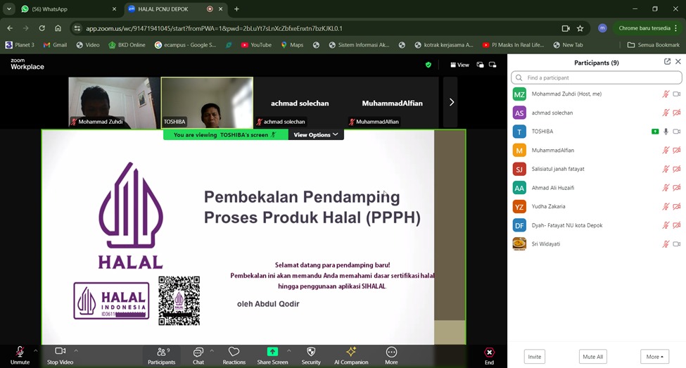 Halal Center Pengurus Cabang Nahdlatul Ulama (PCNU) Kota Depok kembali melanjutkan komitmennya dalam mendukung pelaku Usaha Mikro, Kecil, dan Menengah (UMKM) di sektor sertifikasi halal. Setelah sukses menyelenggarakan pelatihan calon pendamping halal, kini Halal Center PCNU Depok memberikan pembekalan praktik lapangan kepada sembilan pendamping halal yang telah dinyatakan lulus.