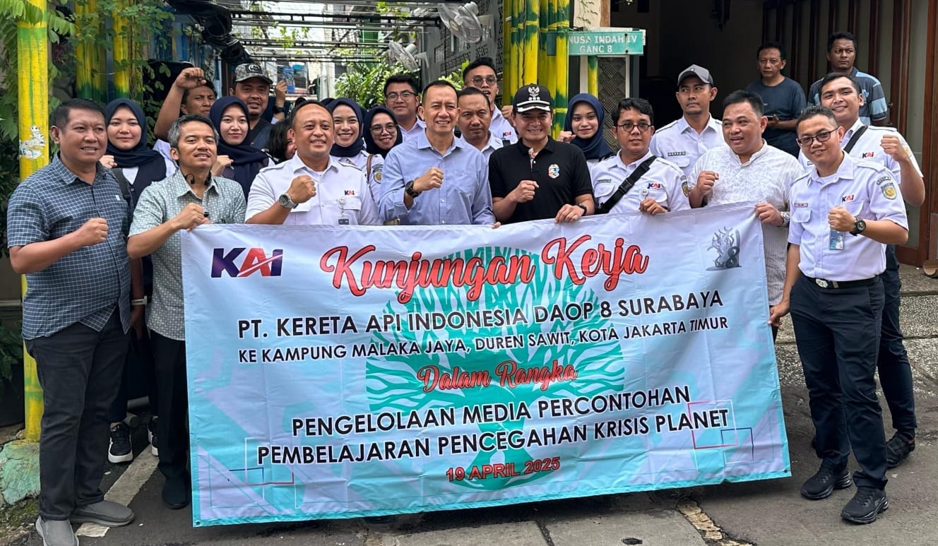 Sebagai bentuk keseriusan dalam menjaga lingkungan hidup dan menghadapi krisis planet, rombongan Daop 8 Surabaya, PT Kereta Api Indonesia (Persero) yang dipimpin langsung oleh Kepala Daop 8 hadir dalam kunjungan resmi ke Media Percontohan Pembelajaran Pencegahan Krisis Planet yang terletak di RT8 RW4 Malaka Jaya, Duren Sawit, Jakarta Timur  pada (19/4/2025).