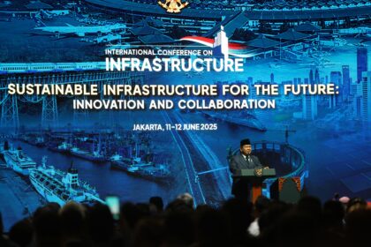 Presiden Prabowo Subianto dalam kegiatan Konferensi Internasional Infrastruktur di Jakarta Convention Center (JCC), Rabu (12/6). (foto: BPMI Setpres)