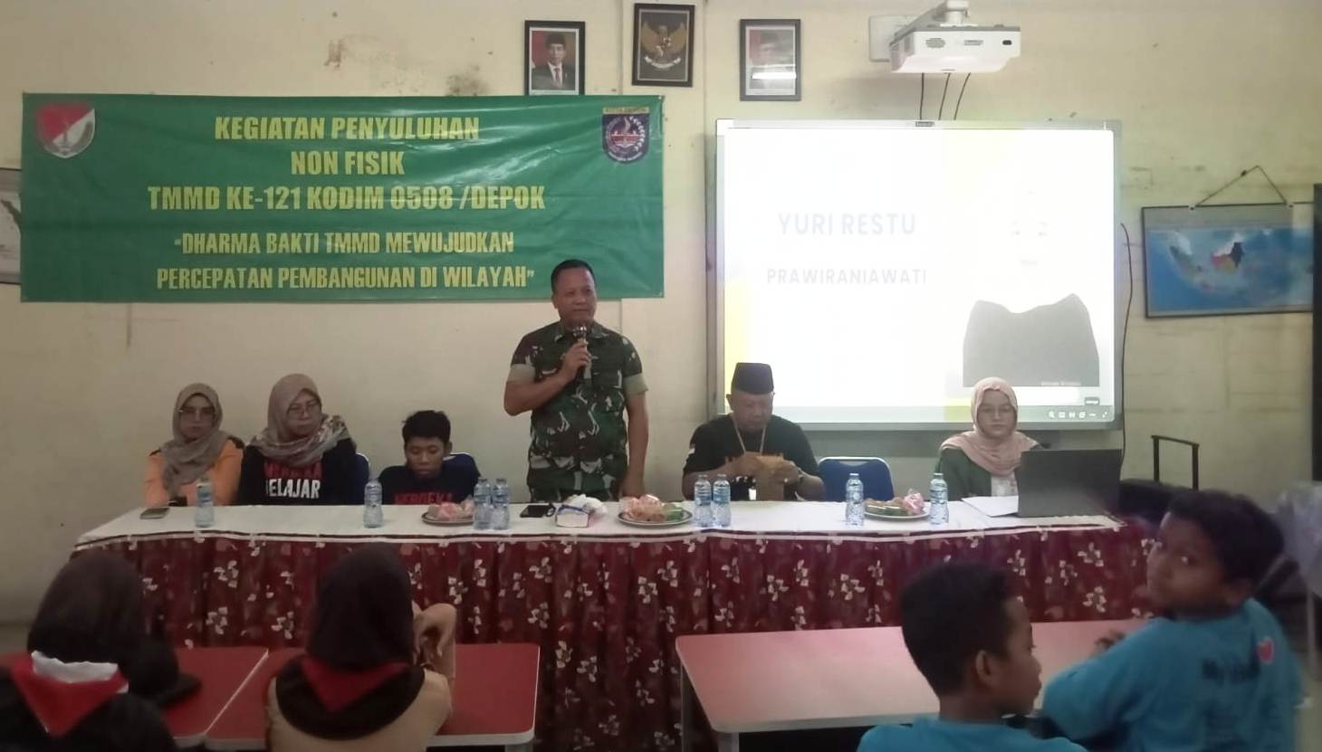 Kegiatan TNI Manunggal Membangun Desa (TMMD) di kecamatan Bojongsari, selain melaksanakan kegiatan fisik berupa pembangunan insfrastrukur TMMD ke-121 juga melaksanakan kegiatan non fisik diantaranya sosialisasi kebangsaan dan bela Negara.