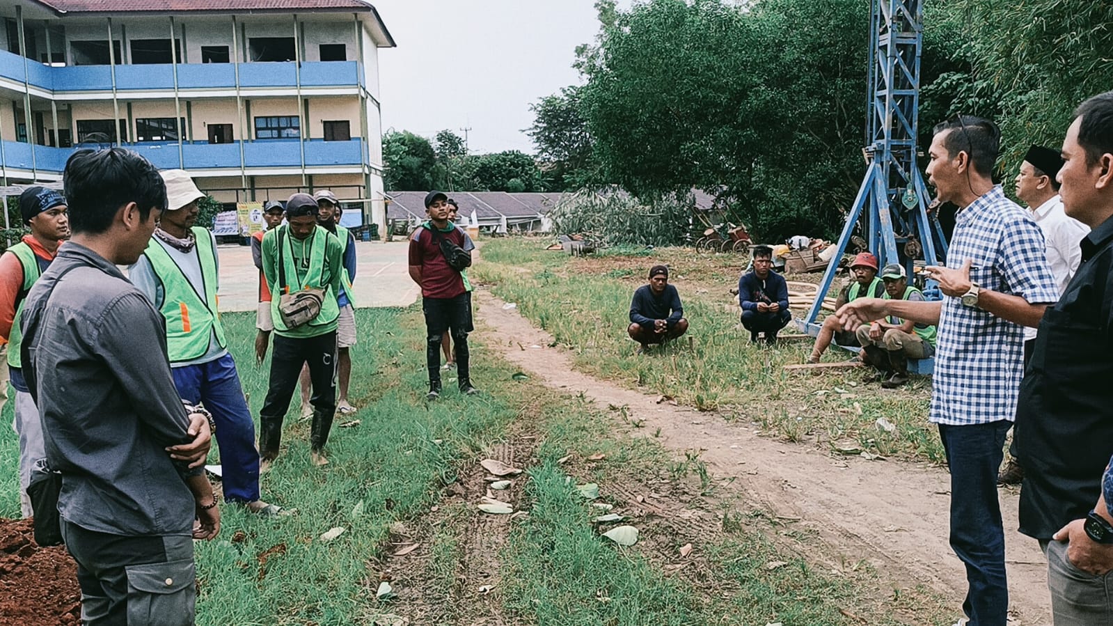 Lembaga Pemberdayaan Masyarakat (LPM) kelurahan Bedahan, kecamatan Sawangan Kota Depok, mendatangi lokasi pembangunan Ruang Kelas Baru (RKB) di SMP Negeri 25 Jalan Jabon, pada Sabtu (14/6/2025).